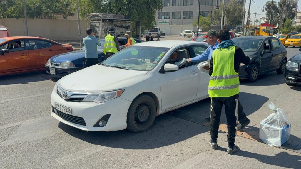 Kerkük şehrindeki Üçüncü Belediye Bölgesi’ne bağlı hizmet ekipleri, ana caddelerdeki araç sürücülerini şehrin temizliğini korumaya teşvik etmek ve çöplerin rastgele atılmamasının önemi konusunda farkındalığı artırmak amacıyla naylon poşet ve bilinçlendirme etiketleri dağıtma kampanyası başlattı.